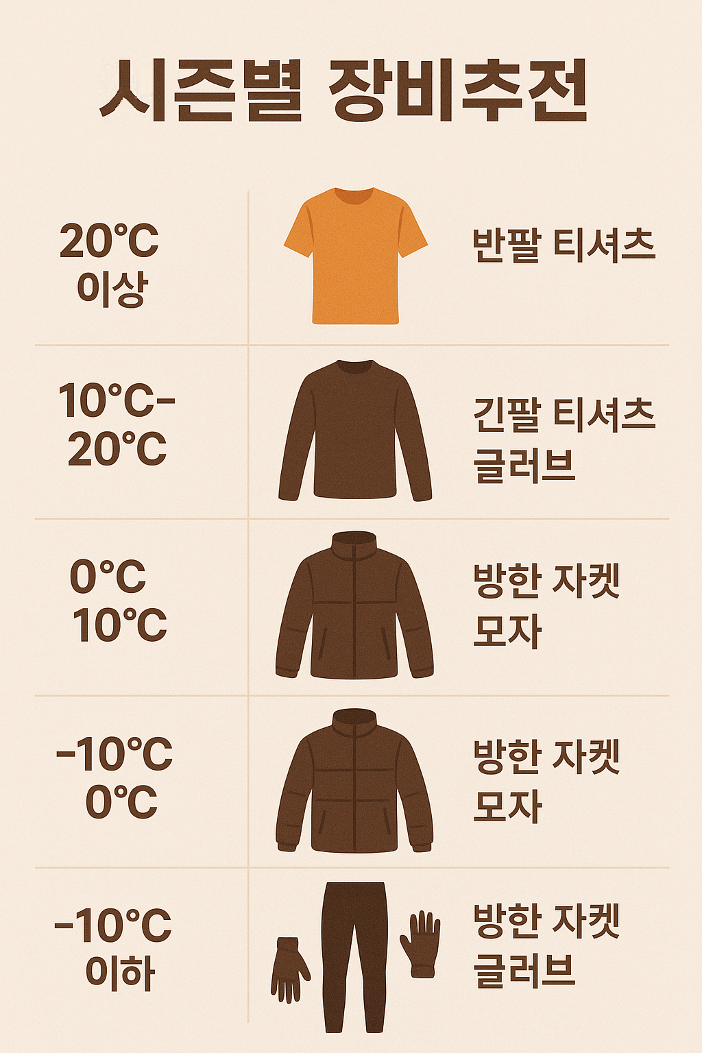 🔴 완성형 + 얇은 장갑/모자 + 여분 상의 약 15~20만 원