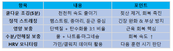 🌇 3. 러닝 후 루틴: ‘끝까지’가 진짜 러닝